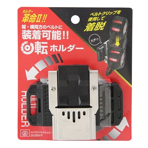 ホルダーは回転式のため、横ベルト・縦ベルトに装着可能です。